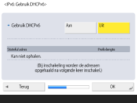 Druk op <Aan> om DHCPv6 te gebruiken of op <Uit> om die niet te gebruiken, en dan op <OK>.