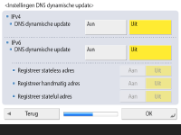 Als u <DNS dynamische update> voor <IPv6> instelt op <Aan>, selecteert u <Aan> voor de items die automatisch geregistreerd moeten worden.