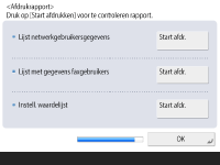 Druk op <Start afdrukken> voor het rapport dat u wilt afdrukken.