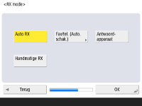 Druk op <Auto RX> wanneer u alleen de faxfunctie gebruikt of <Fax/tel. (Auto. schak.)> wanneer er een telefoon of handset met de machine is verbonden en druk op <OK>.