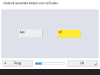Als u verificatie via numerieke sleutelinvoer alleen op het inlogscherm wilt gebruiken, drukt u op <Aan> en druk op <OK>.