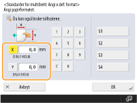Hvis du registrerer papirstørrelsen som du bruker ofte med knappene <S1> til <S4>, kan du hente dem frem med ett trykk.Registrere papir i fritt format (egendefinert papirstørrelse)