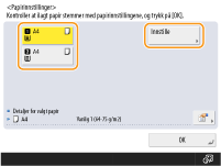 Hvis <Bekreft når det legges papir i papirskuff> er satt til <Av>, trykker du på