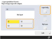 Velg en knapp fra <S1> til <S4>, og trykk på <Lagre/redigere>.