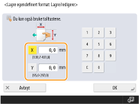 Spesifiser lengden på <X>-siden og <Y>-siden. Trykk på <X> eller <Y> for å angi lengden på hver side med talltastene.