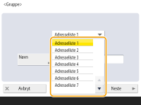 Flere destinasjoner som er registrert i adresseboken (Registrere mottakere i adresseboken), kan kombineres til en gruppe. Du kan bruke denne funksjonen til å sende dokumenter og sikkerhetskopiere data samtidig, fordi forskjellige typer destinasjoner kan registreres i samme gruppe. Du kan for eksempel registrere e-postadresser og IP-adresser for filserveren sammen i en gruppe.
