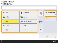 Hvis du vil endre eller slette informasjonen om destinasjoner som er registrert med trykknapper, kan du se Redigering av de registrerte destinasjonene i ettrykksknappene.