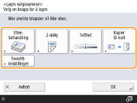 etterfulgt av <Endre standardinnstillinger>. Hvis du logger på maskinen med personlig godkjenningsstyring (Logge på maskinen) før du utfører denne innstillingen, er den registrert som din egen personlige standardinnstilling (Liste over elementer som kan personlig tilpasses). |