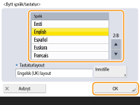 Trykk på <Bytt språk/tastatur>, velg et språk fra listen og trykk på <OK>.