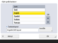 Du kan endre språk som vises på berøringspanelskjermen og tastaturet.