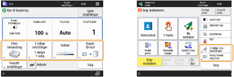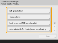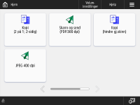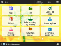 Du kan endre innstillingsknappene som vises på skjermbildene Grunnleggende funksjoner (for kopiering, faks og skanning). Du kan også vise et annerledes Grunnleggende funksjoner-skjermbilde, tilpasset for hver påloggede bruker.