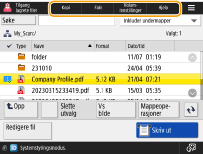 For å kunne bruke <Hjem>-skjermbildet enklere samt skjermbildet Grunnleggende funksjoner for hver funksjon, kan du tilpasse skjermbildet ved å omorganisere knappene og opprette snarveisknapper. I tillegg kan du jobbe mer effektivt ved å registrere innstillingene som allerede er spesifisert for ofte brukte funksjoner, til <Personlig>/<Delt>, eller Personlige innstillinger for å tilpasse driftsmiljøet etter eget ønske.