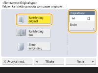 Trykk på <Kantsletting original> og angi <Originalformat>.
