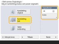 Trykk på <Kantsletting bok> og bekreft <Originalformat>.
