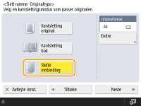 Hvis størrelsen vises i <Originalformat> er forskjellig fra størrelsen på boken du angir, trykker du på <Endre> for å velge størrelse.