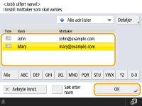 Destinasjonen for varslings-e-posten må spesifiseres fra adresseboken. Registrer ønsket destinasjon på forhånd. Registrere mottakere i adresseboken