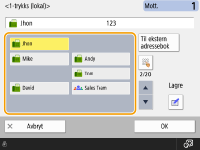 <Lagre ny mottaker>, <Detaljer/rediger> og <Slette> i <Lagre/redig.> på skjermbildet Adressebok (lokal) kan brukes til å registrere nye mottakere, sjekke detaljer og redigere/slette mottakere.