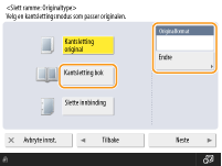 Trykk på <Kantsletting original> og kontroller <Originalformat>.