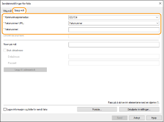 [Legg til prefiks for linje ut i G3/IP-faksnummer], og angir et faksnummer i [G3] tekstboksen.