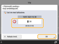 Angi sendingstiden og trykk på <OK>.