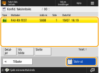 Denne funksjonen er for å lagre mottatte dokumenter som samsvarer med spesifikke betingelser, på det spesifiserte lagringsstedet (konfidensiell faksinnboks). Den konfidensielle faksinnboksen inneholder flere bokser, og hver boks kan beskyttes med passord. Ved å spesifisere betingelser som lagre alle dokumenter fra Firma A i Boks 10, kan du bare sjekke dokumentene du trenger tilgang til. Denne funksjonen lar deg også forhindre uvedkommende fra å se konfidensielle dokumenter utilsiktet ved å angi et passord. Når Behandler/data-indikatoren på kontrollpanelet lyser konstant grønt, følger du fremgangsmåten nedenfor for å sjekke / skrive ut lagrede dokumenter.