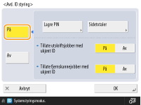Tast inn et tall med sju sifre eller mindre for PIN-koden og trykk på <Bekreft>. For å bekrefte angir du PIN-koden på nytt og trykker på <OK>. Hvis du ikke vil angi en PIN-kode, lar du dette feltet være tomt.