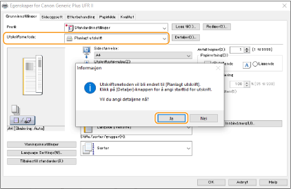 Du kan angi et tidspunkt for å starte utskriften, noe som er nyttig hvis du for eksempel skriver ut store mengder av dokumenter om natten.