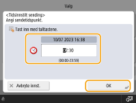 Du kan skanne originaler på forhånd og sende/lagre de skannede dokumentene på et angitt tidspunkt.