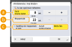 <Handling når ringeperiode er over>: <Avslutt kommunikasjon>, <Motta faks>