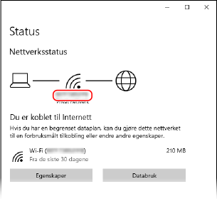 Klikk på [Egenskaper] for tilkoblet nettverk.