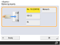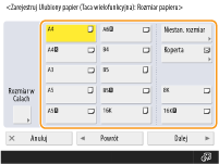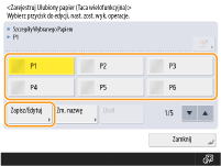Jeśli dla opcji <Zawsze wprowadzaj> w sekcji <Domyślne tacki wielofunkcyjnej> wybrano ustawienie <Ulubiony papier>, wyświetlony zostanie ekran umożliwiający wybranie papieru ulubionego podczas ładowania papieru na tacę wielofunkcyjną. <Domyślne tacki wielofunkcyjnej>