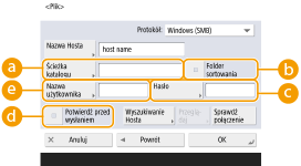 Jeżeli wybierzesz <Windows (SMB)>, przyciski <Wyszukiwanie Hosta> oraz <Przeglądaj> zostaną wyświetlone. Możesz łatwo określić serwer plików/Zaawansowana przestrzeń, wyszukując lub przeglądając sieć.