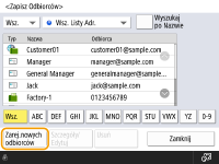 Rejestrowanie/edytowanie/usuwanie odbiorców można również wykonać z następujących ekranów: