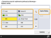 Aby zmienić lub usunąć informacje o odbiorcach przypisanych do klawiszy wybierania jednoprzyciskowego, patrz Edycja odbiorców zarejestrowanych pod klawiszami wybierania jednoprzyciskowego.