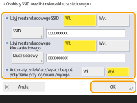 Tego ustawienia można używać, gdy dla opcji <Użyj Osobis. SSID oraz Ust. klucza sieciowego> wybrano ustawienie <Włącz> na ekranie <Ustawienia trybu Access Point>.