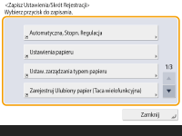 ![]() <Ustawienia zarządzania ekranu głównego> <Ogranicz wyświetlanie funkcji> <Ustaw> skonfiguruj wyświetlanie pozycji <Ustawienia/Skrót zapisu>.Skróty, które można zarejestrować: 10