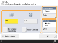 Aby wykonywać dwustronne kopie albo skanować dwustronne oryginały w celu uzyskania jednostronnych kopii, naciśnij opcję <Ustawienia dwustronne>. Aby uzyskać więcej informacji na temat tego ustawienia, patrz 2-stronne kopiowanie w punkcie 4 dla