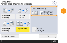 Dwustronna>, przednia i tylna strona jednego arkusza stron widzących zostaną skopiowane na obu stronach jednego arkusza papieru.
