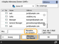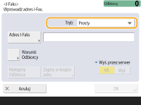 Wysyłanie do urządzenia w obrębie tej samej sieciPodczas wysyłania I-faksu do urządzenia w obrębie tej samej sieci można wysyłać bezpośrednio do tego urządzenia z pominięciem serwera pocztowego. Dla <Wyślij przez serwer> ustaw <Wyłącz> przed wysłaniem I-faksu.