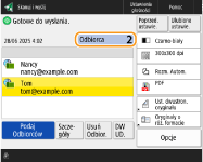 Sprawdzanie całkowitej liczby określonych odbiorcówCałkowita liczba określonych odbiorców jest wyświetlana w prawym górnym rogu ekranu. Umożliwia to potwierdzenie przed wysłaniem, czy liczba odbiorców jest prawidłowa.