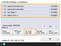 Można również sprawdzić informacje licznika dla poszczególnych aplikacji MEAP. Naciśnij opcję <Sprawdź Liczn. MEAP> na ekranie w kroku 2. Jeżeli naciśniesz <Infor. o urządze./Inne> <Spr. Konfigur. Urządzenia> na tym samym ekranie, możesz sprawdzić opcje zainstalowane w urządzeniu.