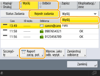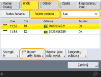 Nie można skonfigurować ustawień dla raportu aktywności faksu, jeśli dla opcji <Wyświetlanie rejestru zadań> w <Ustawienia Zarządzania> ustawiono <Wyłącz>. Dodatkowo, jeżeli zmienisz <Wyświetlanie rejestru zadań> w <Ustawienia Zarządzania> z <Wyłącz> na <Włącz>, <Drukuj/Wyślij każdą wpro. liczbę transmisji> oraz <Drukuj/Wyślij w podanym czasie>, dla Raportu z połączeń faksu automatycznie ustawione zostanie <Wyłącz>. <Wyświetlanie rejestru zadań>