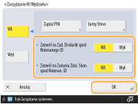 Wybierz <Wyłącz> dla funkcji, którymi chcesz zarządzać i naciśnij <OK>.