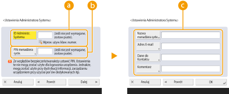 W przypadku ID administratora systemu i kodu PIN administratora systemu możesz dodać wymóg zastosowania minimum siedmiu cyfr. Aby uzyskać więcej informacji, należy skontaktować się ze sprzedawcą lub przedstawicielem serwisu.