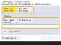 Aby wybrać odbiorcę, który zostanie powiadomiony z <Książka Adresowa>, konieczne jest wcześniejsze zarejestrowanie odbiorcy. Rejestrowanie odbiorców w książce adresowej