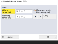 W przypadku wybrania ustawienia <Główna linia> dla opcji <Wybierz linię do użycia> ustawienia parametru <Główna linia> będą widoczne w obszarach <Ustawienia Adresu Serwera DNS> oraz <Ustawienia Proxy>.