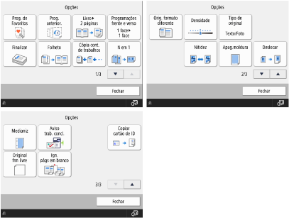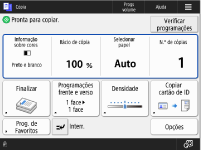 Ecrã das funções básicas de cópia