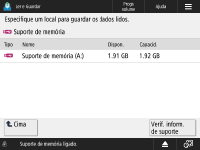 Ecrã de seleção Armazenamento