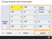 Se gravar o formato de papel que utiliza frequentemente nos botões <S1> a <S4>, pode aceder-lhes com um só toque. Gravar papel de formato livre (Papel de formato personalizado)