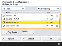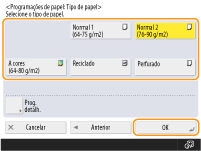 Se o tipo de papel colocado não for apresentado, carregue em <Prog. detalh.> para o selecionar a partir de uma lista.